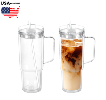 Vaso de 40 oz, taza de plástico para cerveza, 40 oz, preperforado, doble pared, globo de nieve, vaso de plástico transparente con asa y pajita para viajes