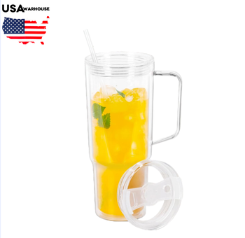 40oz Tumbler Beer Plastic Mug 40 oz Pre Drilled Double Wall Snow Globe clear Plastic Cup with Handle and Straw for Travel