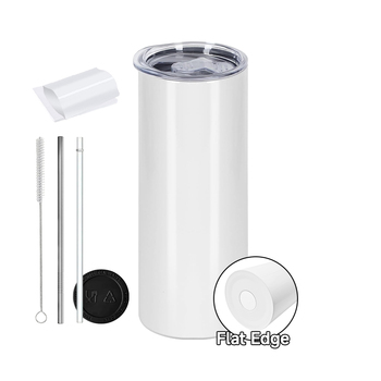 Usa magazzino riutilizzabile 20oz bordo piatto Skinny bianco sublimazione in bianco 304 in acciaio inox Tumbler con paglia per sublimazione