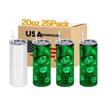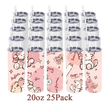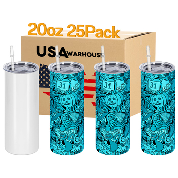USA 창고 20 oz 스키니 스트레이트 화이트 승화 빈 이중 벽 절연 스테인레스 스틸 텀블러 뚜껑과 빨대