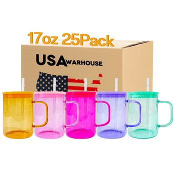 EUA 17oz Leak Proof Bpa Free Drinking Beer Coffee Sublimation Glass Jelly Canecas com tampa e alça para viagens ao ar livre Restaurante