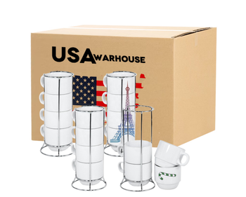 ชุดแก้วน้ำชากาแฟเซรามิกแบบวางซ้อนได้พิมพ์ซับลิเมชันสีขาวน่ารัก4ออนซ์สำหรับเดินทางคริสต์มาสจากคลังสินค้า USA